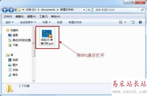 選擇一個ppt文檔,如果你電腦以默認用WPS打開辦公文檔,就直接打開;如果不是默認,那就選中ppt文檔,右鍵,選擇打開方式為WPS演示。
