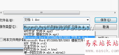 如果你是點擊快捷方式打開WPS文字并且第一次保存該文件,會彈出選擇保存路徑的對話框。在對話框底部的下拉菜單里,就可以自己選擇保存的格式了。