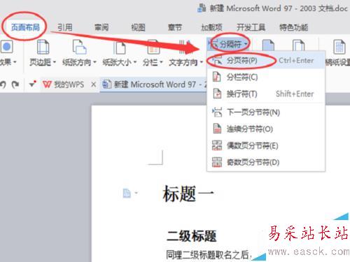 7、但是目錄和正文混在一起的顯示效果是非常不好的。所以一般我們會把光標停在一張空白頁上,在空白頁上創建目錄。那么如何把首頁或者某一頁變成空白頁。