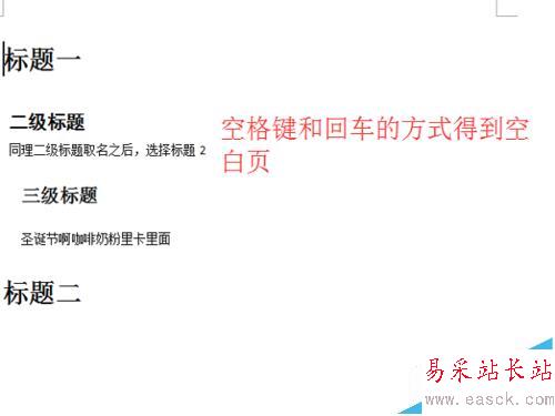 8、當然要快速的插入一頁空白頁,就要使用快捷鍵的方式。ctrl+enter。就可以快速得到一頁空白頁了。最后效果如圖,你會看到正文顯示的頁碼都變成了2.證明已經分開了。圖中目錄兩個字是自己加的而不是生成的。