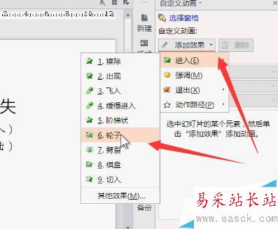 2、繪制完成后,點(diǎn)擊動(dòng)畫,在添加效果里,點(diǎn)擊進(jìn)入。然后選擇動(dòng)畫的種類。