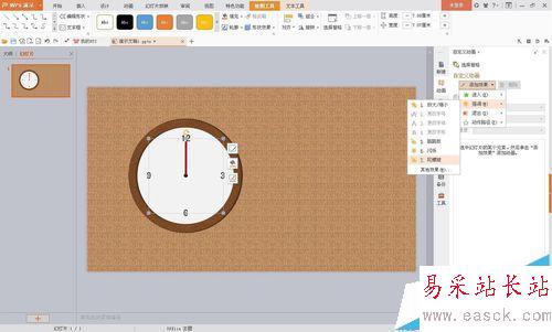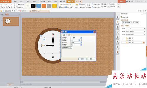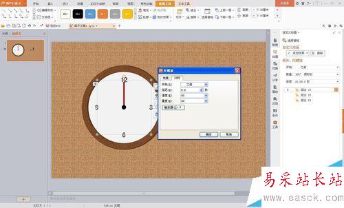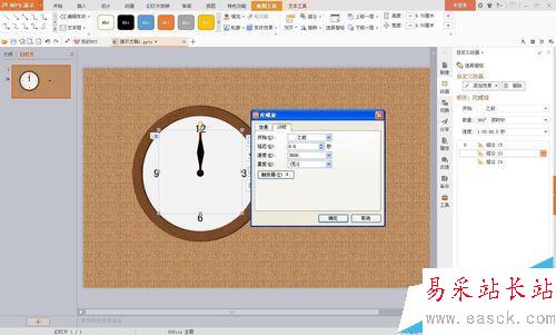 8、將秒針移動到鐘上,下移一層,添加動作-強調-陀螺旋,設置好計時數據。