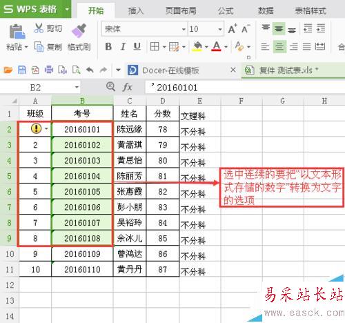 1、選中連續(xù)的要把“以文本形式存儲(chǔ)的數(shù)字”轉(zhuǎn)換成數(shù)字的選項(xiàng),如圖: