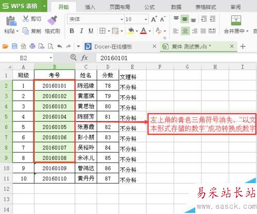 3、左上角青色符號(hào)消失,“以文本形式存儲(chǔ)的數(shù)字”成功轉(zhuǎn)換成數(shù)字,如圖: