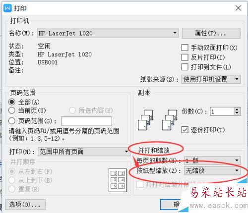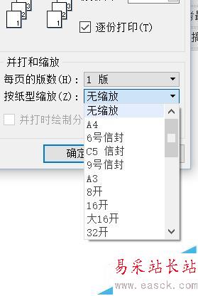 3、在【打印】選項界面下,點擊選擇【并打和縮放】--【按紙型縮放】選項。(如圖所示)