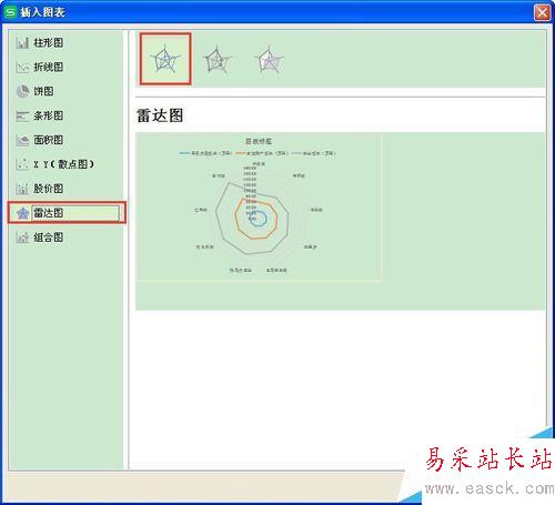 5、如果這種雷達圖不太適合你的數據展示,還可以在第三步選擇第二種或第三種圖達圖。如下圖的結果。