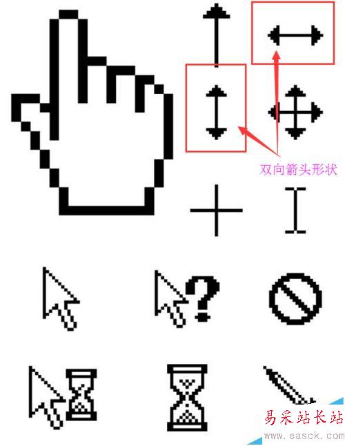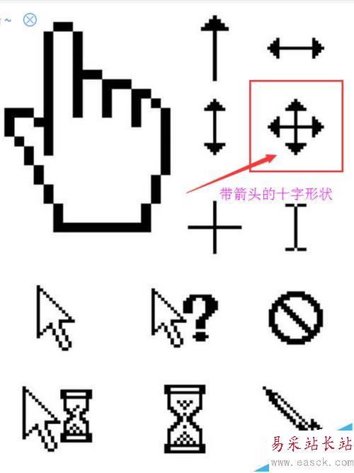 5、帶箭頭的十字形狀 通常出現在圖形處理過程中。可以用來幫助用戶精確地定位,可移動圖形到指定的位置。
