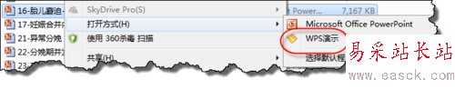 3、選擇文件,右擊在彈出的菜單中選擇“打開方式”為WPS,當然如果你在安裝的時候已經關聯的話,可以直接以WPS的方式打開。