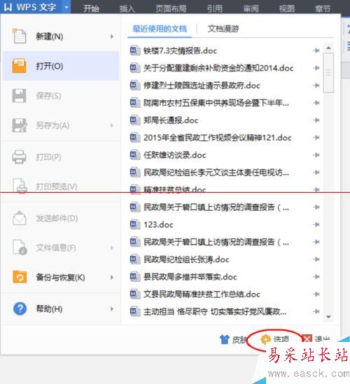 2、在點擊【WPS文字】后,彈出的菜單下點擊選擇【選項】。(如圖所示)