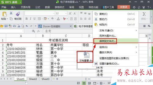 6、當(dāng)然如果你需要的話,我們可以將這個(gè)文件下載到自己電腦,在這個(gè)插入的附件上我們單擊鼠標(biāo)右鍵。選擇保存到文件。