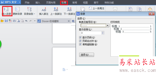 7、點擊”引用“——”插入目錄“,點擊確定即可。