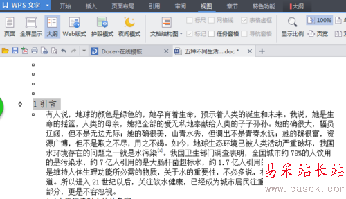 4、設置好之后,點擊“視圖”——“大綱”,切換到大綱模式瀏覽。