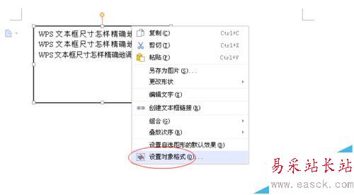 2、在文本框的邊框上右擊,選擇“設置對象格式”