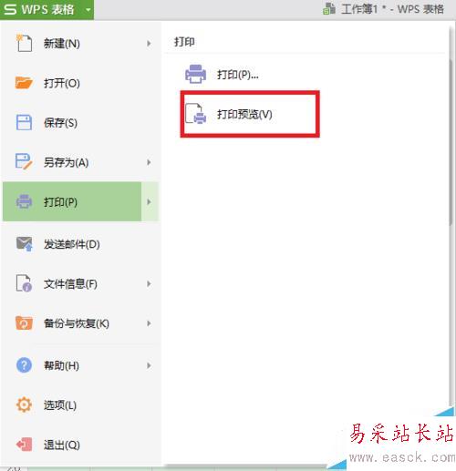 6、然后就可以點擊左上角的“WPS表格”——“打印”——“打印預覽”,就可以觀察到打印出來的效果啦,就是你想要的打印區域。