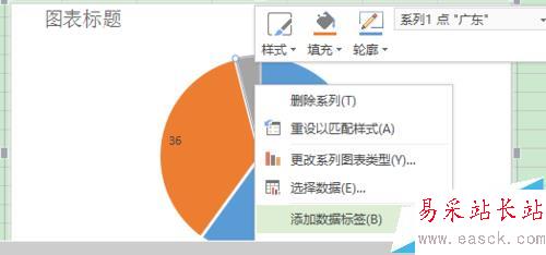 6、點擊右鍵,選擇添加數據標簽,這樣就可以顯示出所占的百分比啦。