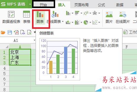 3、在菜單欄上點擊選擇插入——圖表。
