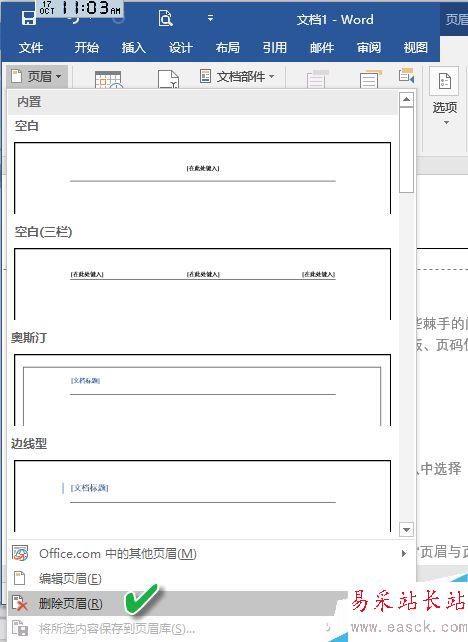 若使用的是Word 2016,頁眉出現(xiàn)橫線,可雙擊頁眉處并選擇“頁眉→刪除頁眉”,頁眉連同橫線會一起去掉,橫線去除后,再添加新的頁眉內(nèi)容即可。