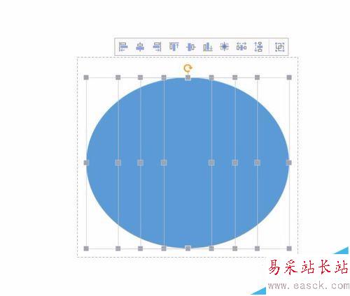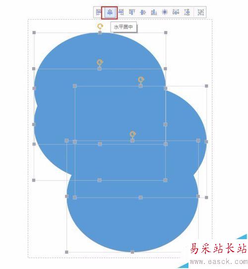 4、按“Shift”加選“4個橢圓形”,如圖所示。在按“水平居中”、“垂直居中”