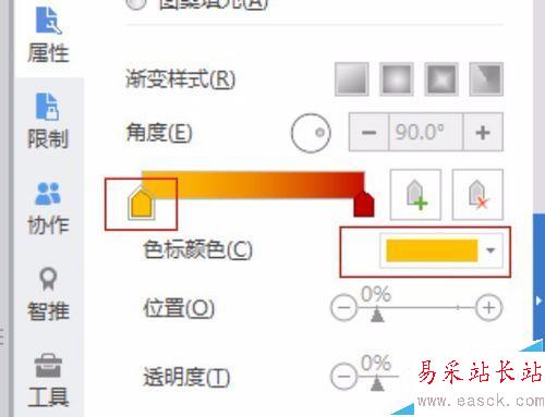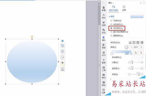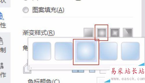 7、選擇“漸變填充”,再選擇“漸變樣式”中的“射線漸變”。選擇角度其中一個,在“色標(biāo)顏色”更改顏色,如圖所示