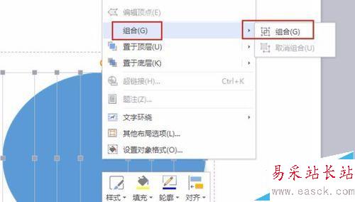 6、按“Shift”加選4個橢圓形,再按右鍵選擇“組合”,如圖所示