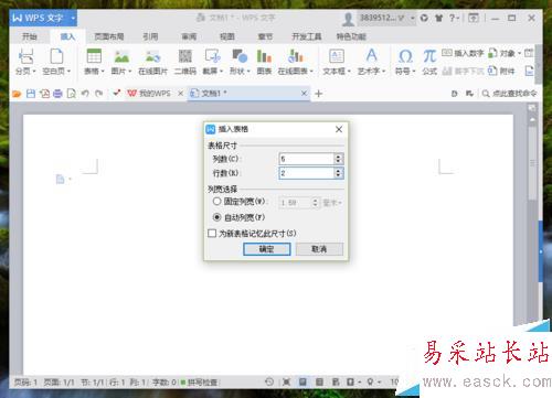3、點擊插入表格選項后,這個時候會打開“插入表格”對話框。如圖所示;