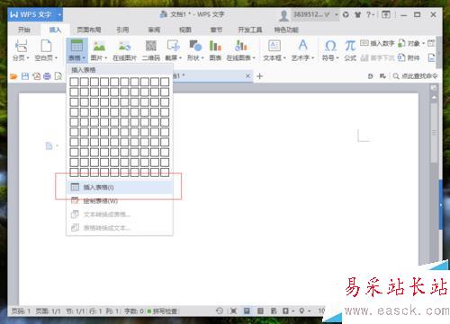 2、在Wps文字的程序窗口,打開“插入”菜單選項卡,依次點擊“表格”-->“插入表格”選項。如圖所示;