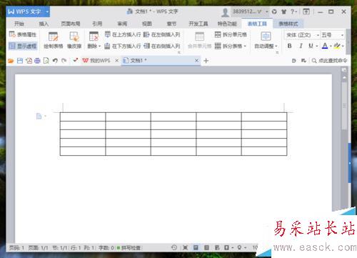 5、點擊確定后,在Wps文字編輯區可看到插入的表格樣式。如圖所示;