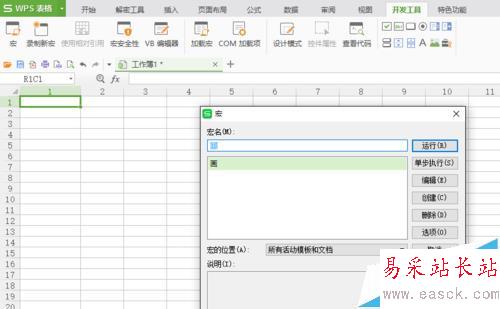 5、編程完成后,關(guān)閉vb編輯器窗口,在電子表格界面的“開(kāi)發(fā)工具”選項(xiàng)欄里,點(diǎn)擊“宏”圖標(biāo),就會(huì)出現(xiàn)啟動(dòng)宏的對(duì)話框。