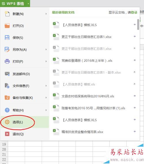 2、在點擊【WPS表格】選項框后彈出的菜單下,點擊選擇【選項】。(如圖所示)