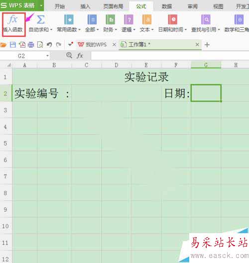 6、在“公式”的下拉菜單選項中我們找到“插入函數”選項,如下圖所示