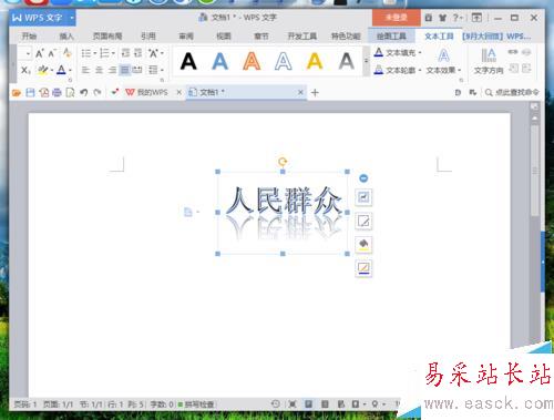 5、返回到Wps編輯窗口,可看到設(shè)置倒影后的效果。如圖所示;