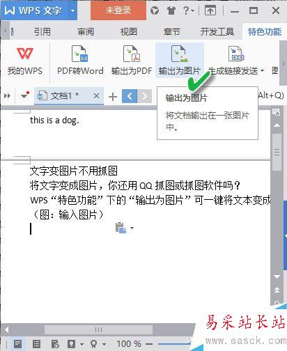 WPS“特色功能”下的“輸出為圖片”可一鍵將文本變成圖片輸出。