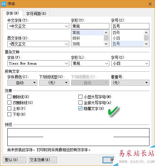 選中文字,右鍵菜單中選擇“字體”,然后從窗口中選擇“隱藏文字”即可。