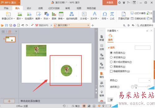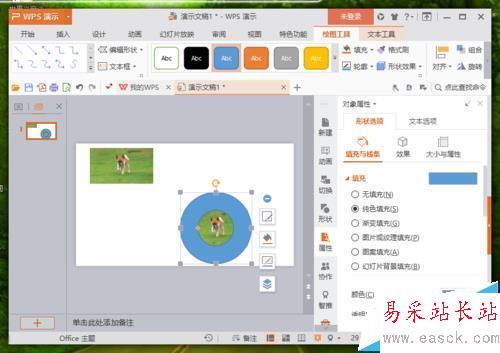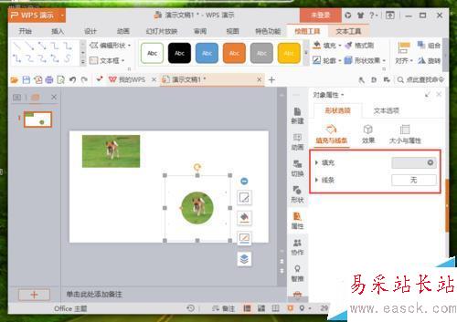 7、點擊設置對象格式選項后,在編輯區域右側會彈出的“對象屬性”編輯框。如圖所示;