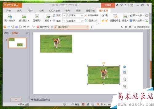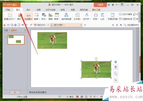 2、在打開的Wps文稿窗口,插入圖片,并將圖片復制一份,移動到其他區域。如圖所示;