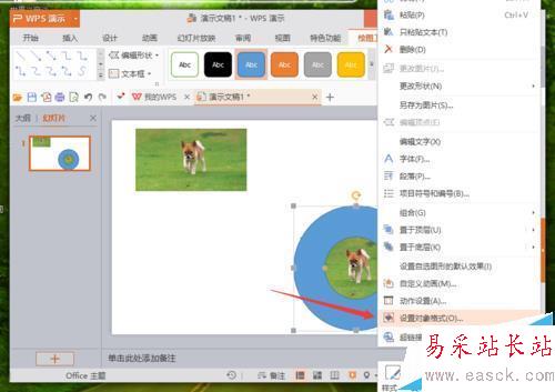 6、在圖形邊框上點擊鼠標右鍵,在彈出的選項框中,點擊“設置對象格式”選項。如圖所示;
