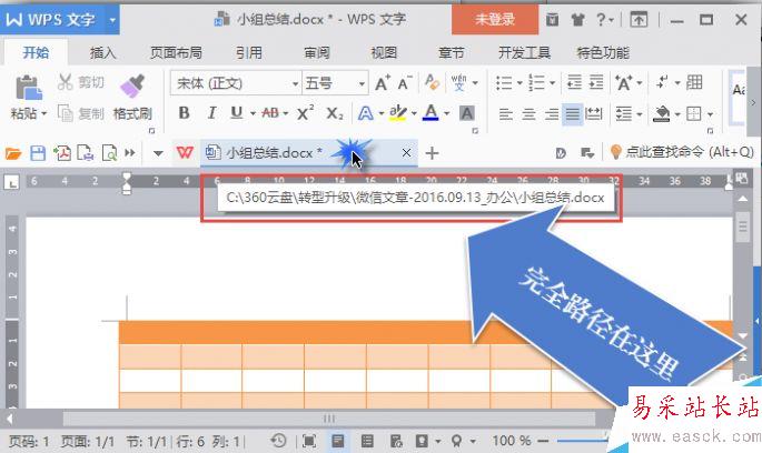 還有更為方便的獲知文件路徑的方法——將鼠標停放在WPS文件標簽之上,不用一秒就能看到文件的完全路徑了。需要注意,這種方法不適合于Word等MS Office文件名查找。