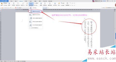 4、當我選擇“垂直方向從右向左”的顯示方向時,文字顯示效果如下圖所示: