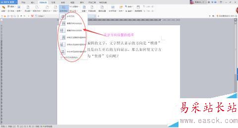 注意:文字方向在設置時,默認是整篇文檔都會改變方向。