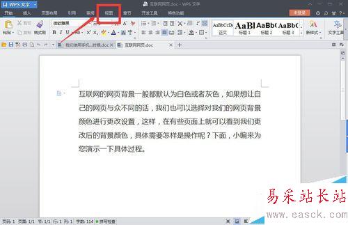 3、這時,兩個文檔的內容無法同時顯示,只能來回切換才行。我們可以點擊上面的“視圖”菜單,如圖所示。