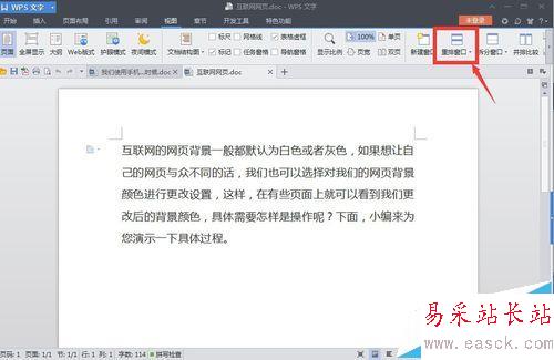 4、點擊以后,出現了視圖菜單項下的一些功能選項,我們點擊“重排窗口”旁邊的倒三角圖標,如圖所示。