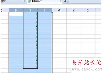 3、我們隱藏的是E列,那么按照字母順序,我們要選定隱藏列或者行的前后兩個列或者行,