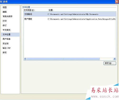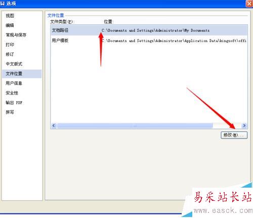 7、在文件位置的右側,點擊“文檔路徑”,然后點擊下方的修改即可進行設置。