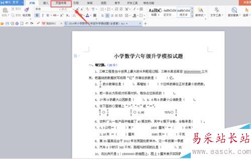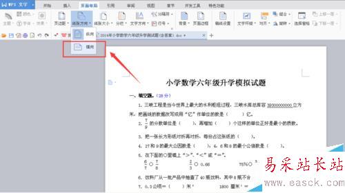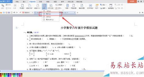 3、同時選定【橫向】。這時候我們可以看到,原來A4排版的試卷已經變為A3的大題排版裝了。
