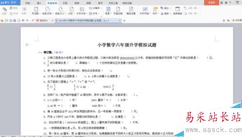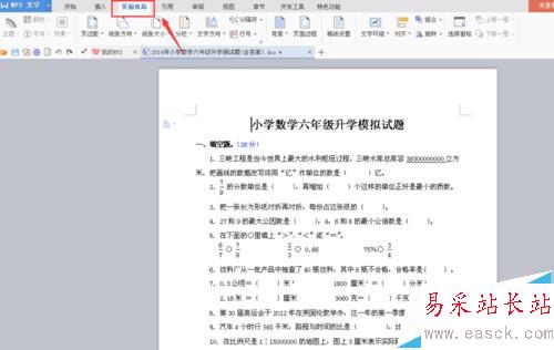 6、這時候你可以看到,試卷的排版已經變為標準試卷的一張兩板塊了。
