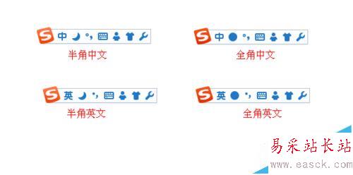 1、下圖所示,在輸入法狀態(tài)下,按下Shift+空格鍵或直接點擊如圖所示的圓形或半月形,可以在全角或半角間進行切換。