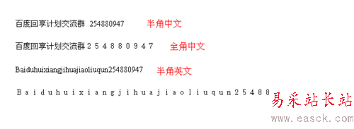 2、下面是全角和半角情況下,輸入法的狀態(tài)及打印出來的字符狀態(tài)。