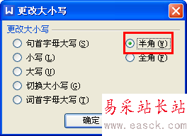 3、在彈出的對話框中點擊“半角”,然后點擊下方的“確定”按鈕。
