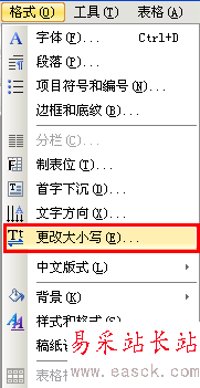 2、然后在下拉菜單中點擊“更改大小寫”項。