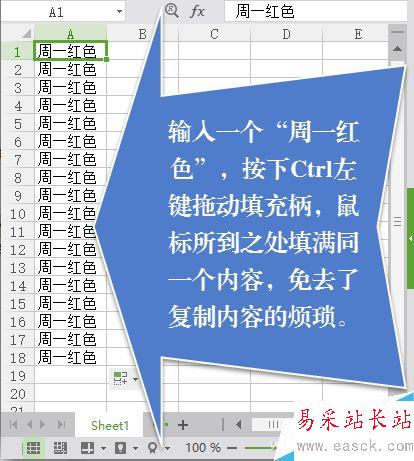 這真是一個復制單元格的快速方法。等效的辦法:在選中所有單元格后輸入內容并回車,也可快速在不同單元格中輸入同一內容。